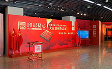 展览主印名为“印记初心”,由钢铁浇铸而成,寓意中国共产党钢铁般坚强、坚不可摧的革命意志和沉甸甸的历史使命、责任担当。主印印身通体铸有“海水江崖纹”,采用党旗红、党徽金配色,寓意中国共产...